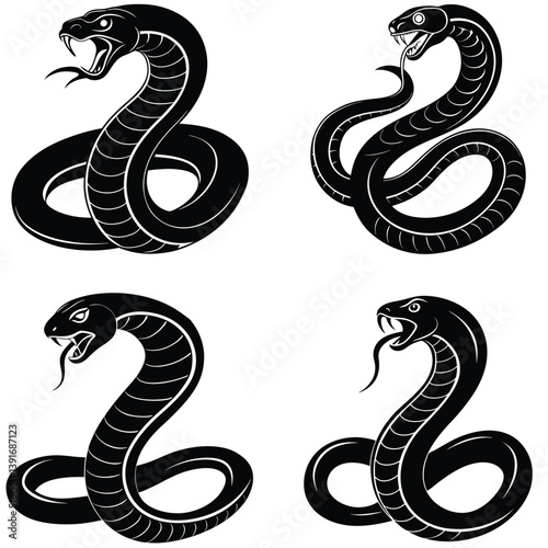 © Rez Wan, Obraz premium Viper Snack Vector Silhouetted Bundle Set Collection. Cobra Snack