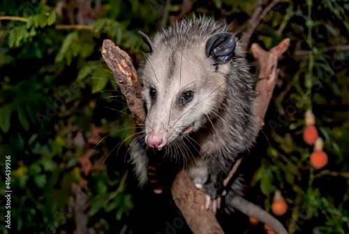 © Nick Taurus, Naklejka premium Virginia Opossum (Didelphis virginiana) in garden, Los Angeles, California, USA