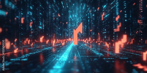 Fototapeta premium Virtual digital arrow up, financial growth, interest rate increase,...