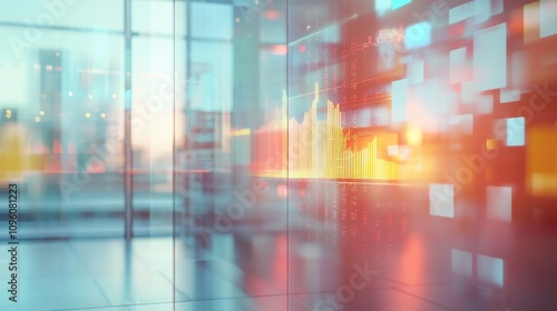 © รุ่งอรุณ ศรีนรสิทธิ์, Naklejka premium Virtual Holographic Financial Analysis and Graph Visualization