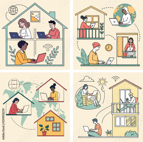 Obraz premium Virtual Meeting Remote Work Concept Vector Illustration