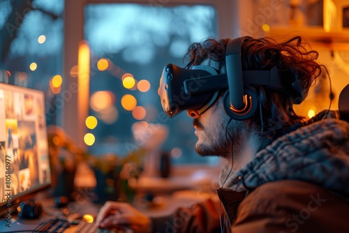 © Onchira, Obraz premium Virtual reality architect, designing immersive digital worlds of designer working in creative studio