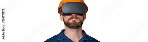 Fototapeta premium Virtual reality experience with transparent background construction worker...