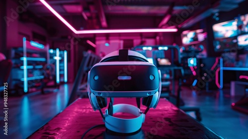 Obraz premium Virtual Reality Headset in Neon Lit Gaming Room