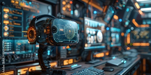 © Galina, Fototapeta premium Virtual reality station with headsets and educational software