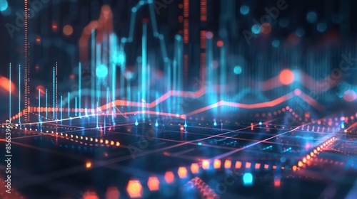 Obraz premium Virtual stock market lines and financial charts over dark background. Digital...
