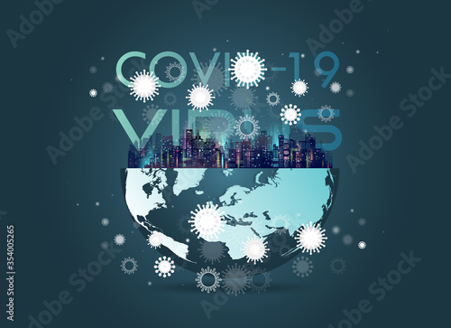 Obraz premium Virus attack world. Coronavirus outbreak in blue shades.