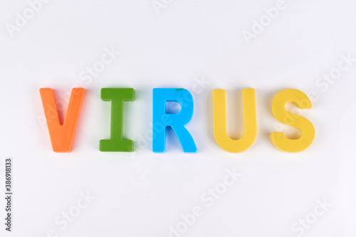 Obraz premium virus colored sign word with alphabet isolated on white background