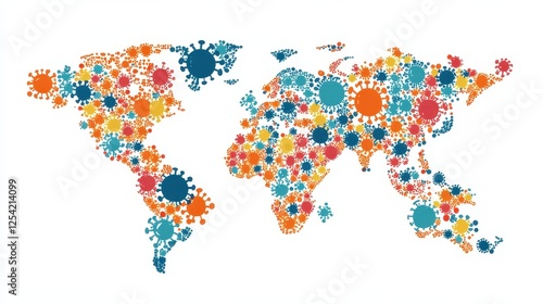 © Chantip, Fototapeta premium Virus floating on world map flat design front view, Epidemiology illustration Front view Bright.