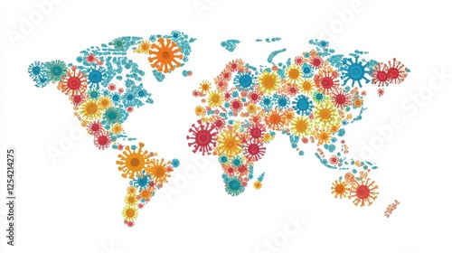 © Chantip, Fototapeta premium Virus floating on world map flat design front view, Epidemiology illustration Front view Bright.