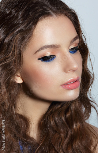 © gromovataya, Fototapeta premium Visage. Pensive Woman with Blue Mascara and Holiday Makeup
