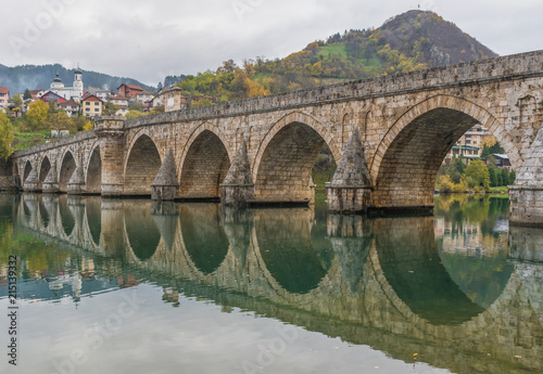 Fototapeta premium Visegrad, Bosnia & Herzegovina - the Mehmed Paša Sokolovic Bridge is one of the main landmarks in the country, and Visegrad one of the pearls of the Balkans