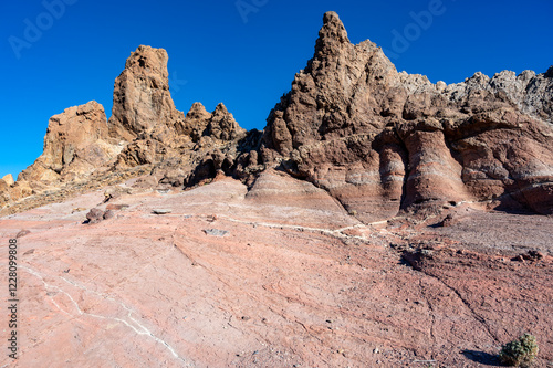 Obraz premium Visiting of Teide national park on Tenerife and view on volcanic landscapes, Canary islands, Spain