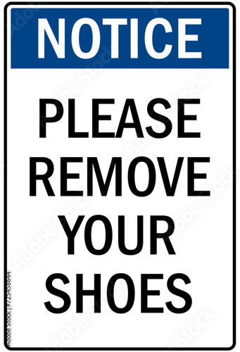 Fototapeta premium Visitor security sign please remove your shoes