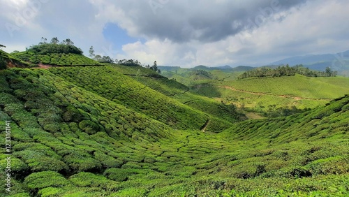 © elPrismaDeFer, Fototapeta premium Vista a los campos de te en los valles de Munnar, Kerala, India