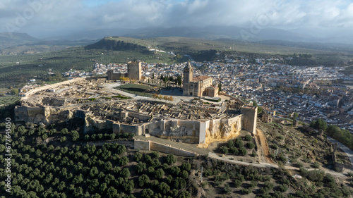© Antonio ciero, Fototapeta premium vista aérea con dron de la fortaleza de la mota en Alcalá la Real, Andalucía