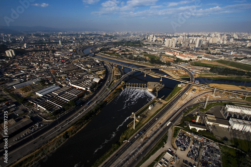 © Vernaglia, Fototapeta premium Vista aérea de São Paulo, com rios Tietê e Pinheiros