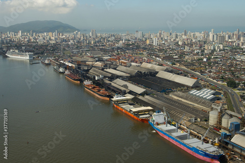 © Pulsar Imagens, Fototapeta premium Vista aérea do Porto de Santos .