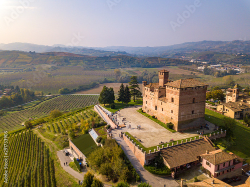 Fototapeta premium Vista aerea del castello di Grinzane Cavour, Langhe, Piemonte, Italia