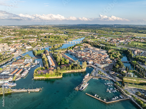 Naklejka premium Vista aerea del centro e del porto di peschiera del garda, e della costa del...
