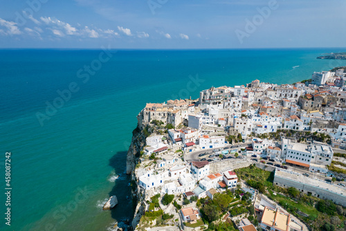 Naklejka premium Vista aerea della città di Peschici sul mare adriatico, parco nazionale del...