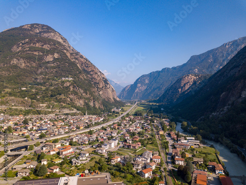 © Pixelshop, Obraz premium Vista aerea di Hone, Bard, Aosta, Valle d'Aosta, Italia