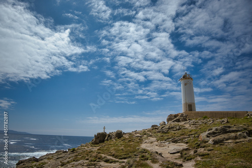 © mvera, Fototapeta premium Vista angular del faro de Roncudo, costa de la muerte, Galicia, España. provincia de A Coruña.