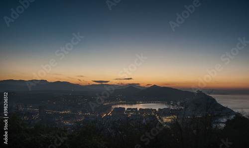 © Safi, Obraz premium vista area de la ciudad de San Sebastian, País vasco oscureciendo
