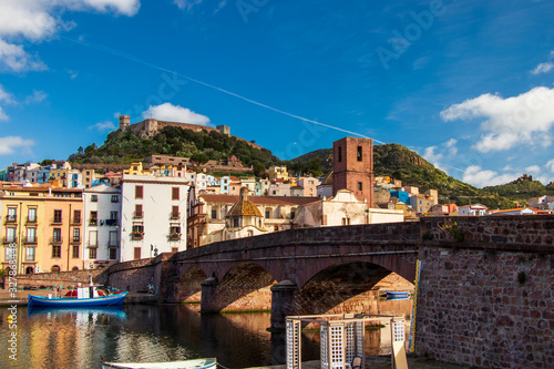 © mario, Obraz premium Vista Centro storico del paese di Bosa
