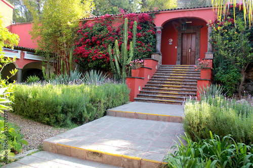 © Arlette, Obraz premium vista de casa con arquitectura decoración y vegetacion tradicional mexicana