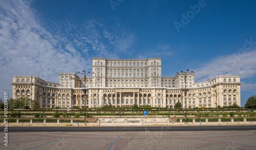 © s-aznar, Obraz premium Vista del edificio del Parlamento en el centro urbano de la ciudad de Bucarest, Rumania