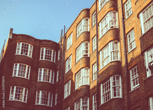 Fototapeta premium Vista di un palazzo Londinese con finestre bianche e mattoni marroni