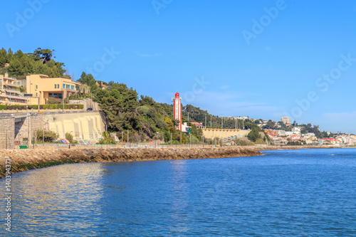 © moedas1, Fototapeta premium Vista do Passeio maritimo em Oeiras com o Farol de Gibalta em Fundo