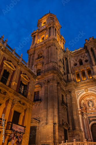 © Joseantonio, Fototapeta premium Vista nocturna de la Catedral de Málaga