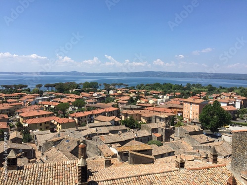 © liboriop, Fototapeta premium vista sui tetti con lago all'orizzonte