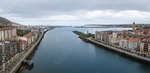 © acaballero67, Naklejka premium Vistas de la ciudad de Bilbao, junto al mar azul, verano 2020