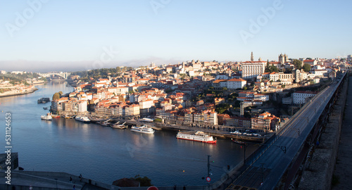 Obraz premium Vistas de Oporto en Portugal amaneciendo un día de verano. Vistas de la...