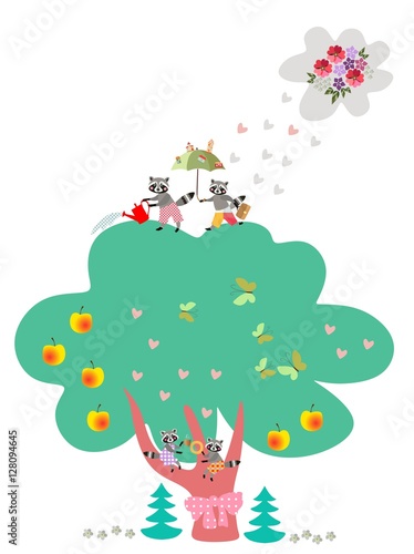 © Happy Dragon, Naklejka premium Visual educational game for children. What is wrong? Vector illustration with lovely raccoons. Entertainment.