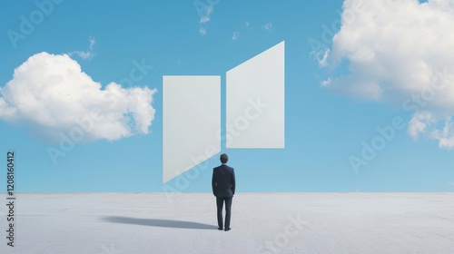 Obraz premium Visual Metaphor for Innovation and Creativity Represented by Man Facing Open...
