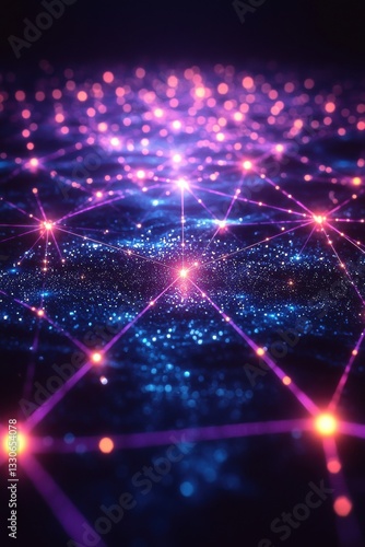 Fototapeta premium Visual representation of a digital network with interconnected nodes and glowing points of light