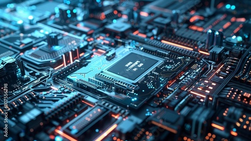 Fototapeta premium Visual representation of a futuristic tech environment with a central processing unit