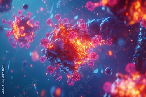 Fototapeta premium Visual representation of antibodies targeting glowing viruses in a dynamic...