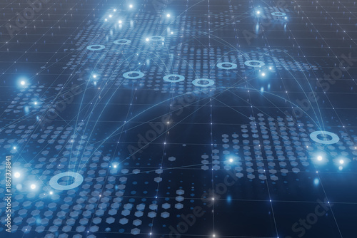 Fototapeta premium Visual representation of digital connections and data networks across a grid...