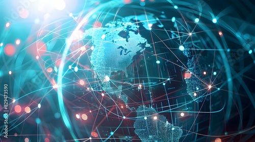 Obraz premium Visual representation of global connectivity with an America-centric digital...