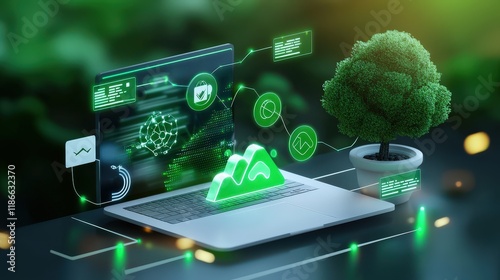 © Rinowz, Fototapeta premium Visual representation of green keywords like green tech, sustainability, energy efficiency, and clean solutions for environmental betterment.