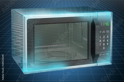 Fototapeta premium Visualization 3d cad model of microwave, blueprint. 3D rendering