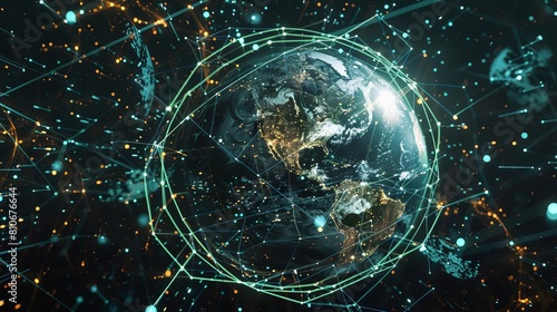 © nattapon98, Obraz premium Visualization of global data exchange over a digital Earth model