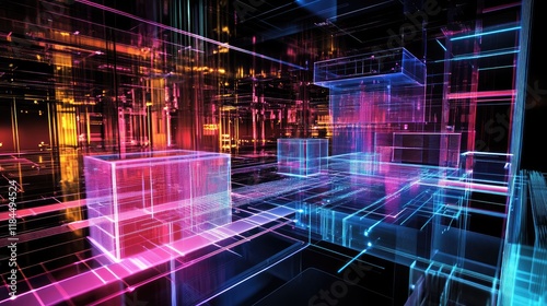 Obraz premium Visualization of quantum computing's role in modern art, with quantum systems used to manipulate light and color in digital canvas creation