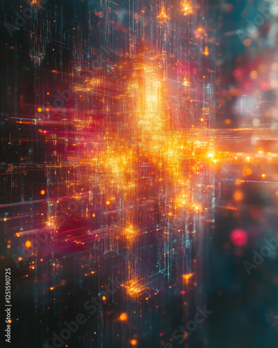 © Ala, Obraz premium Visualization of quantum encryption revealing dynamic data streams and patterns