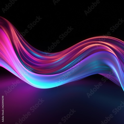 © Matyfiz, Fototapeta premium Visualization of sound waves. Abstract futuristic background with colorful glowing neon moving high speed wave lines and bokeh lights. Data transfer concept. Fantastic wallpaper. Generative AI